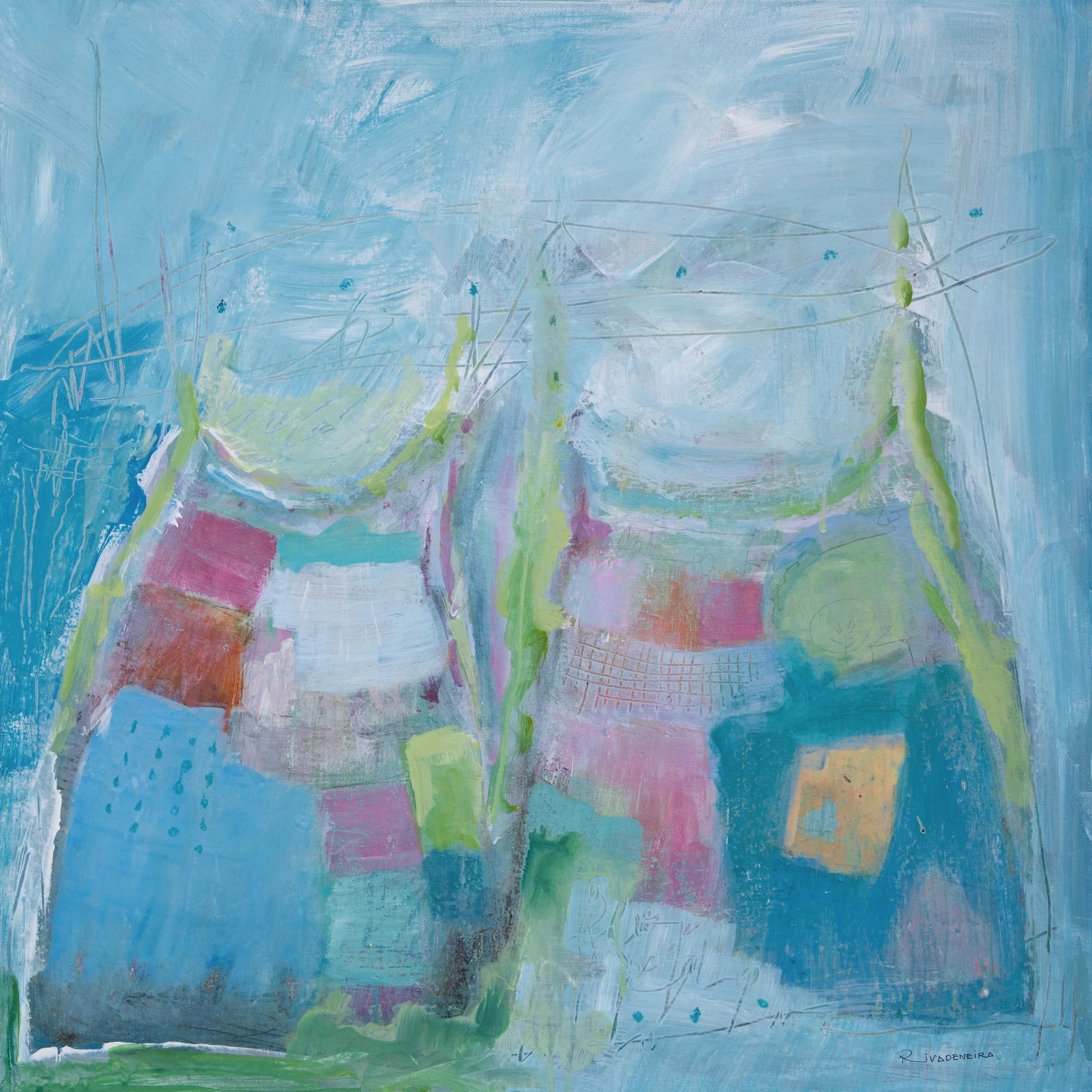 FLYING A KITE Acrylic on canvas 48 x 48 X 1.5 in.