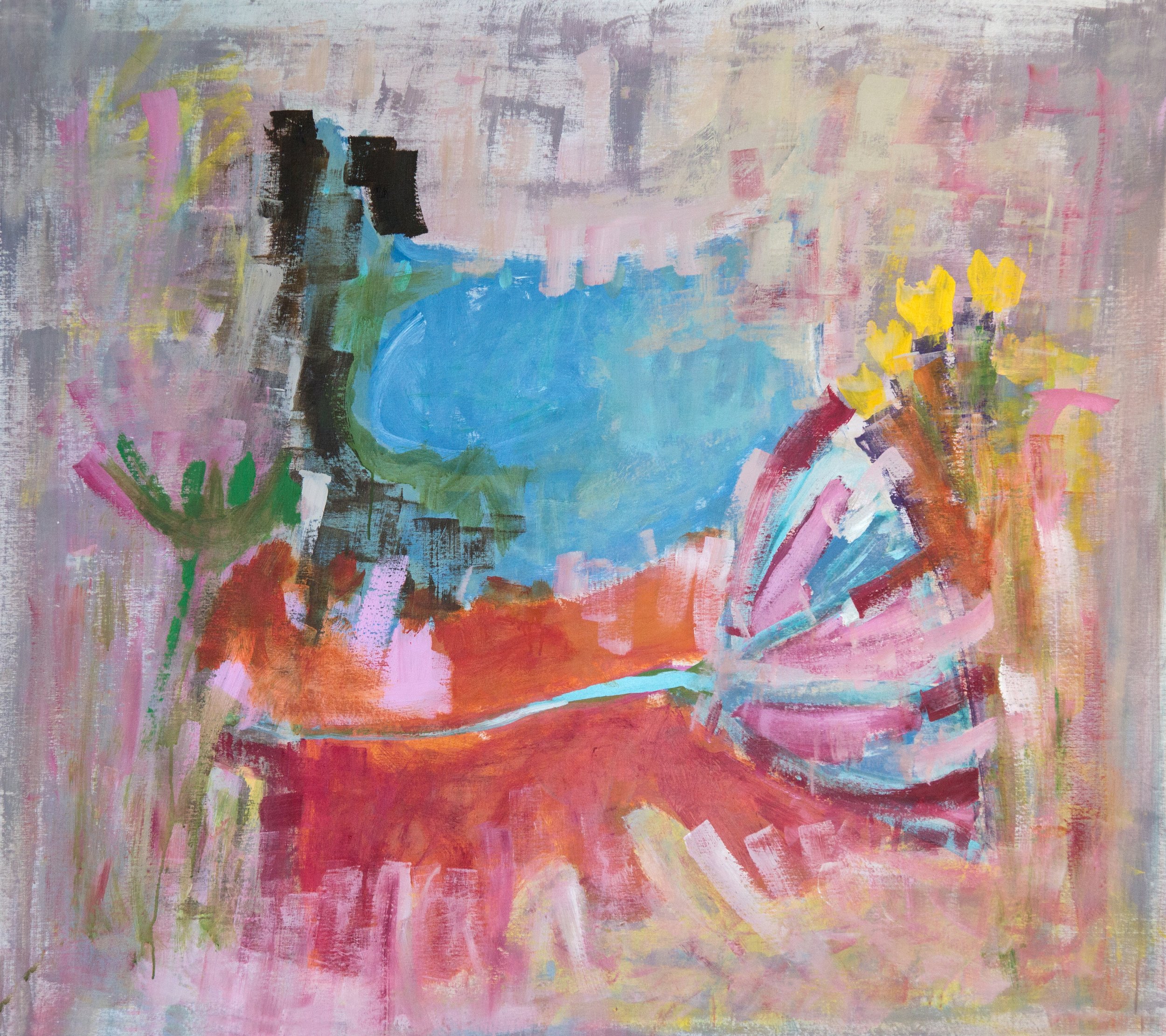 DANCING IN MY GARDEN Acrylic on canvas 47x 56.5 X 1.5 in. Private collection